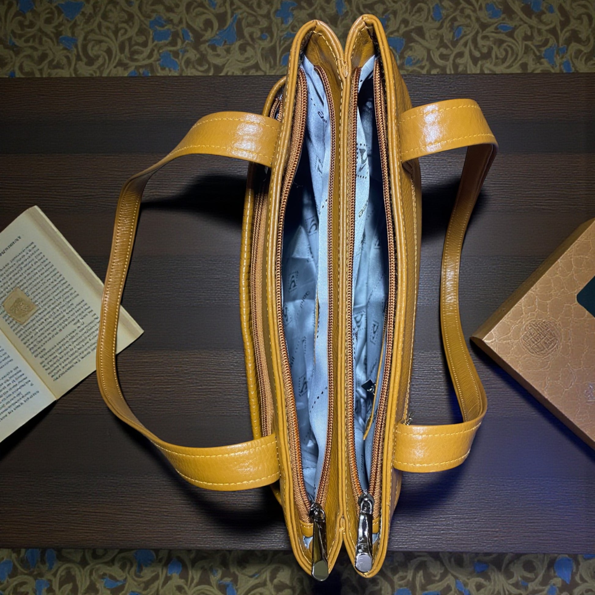 - Stylish Tote: This trendy tan brown leather tote bag exudes sophistication and versatility, perfect for everyday use.