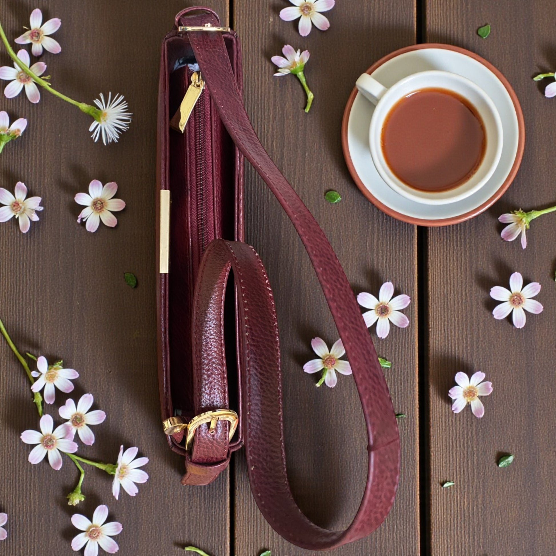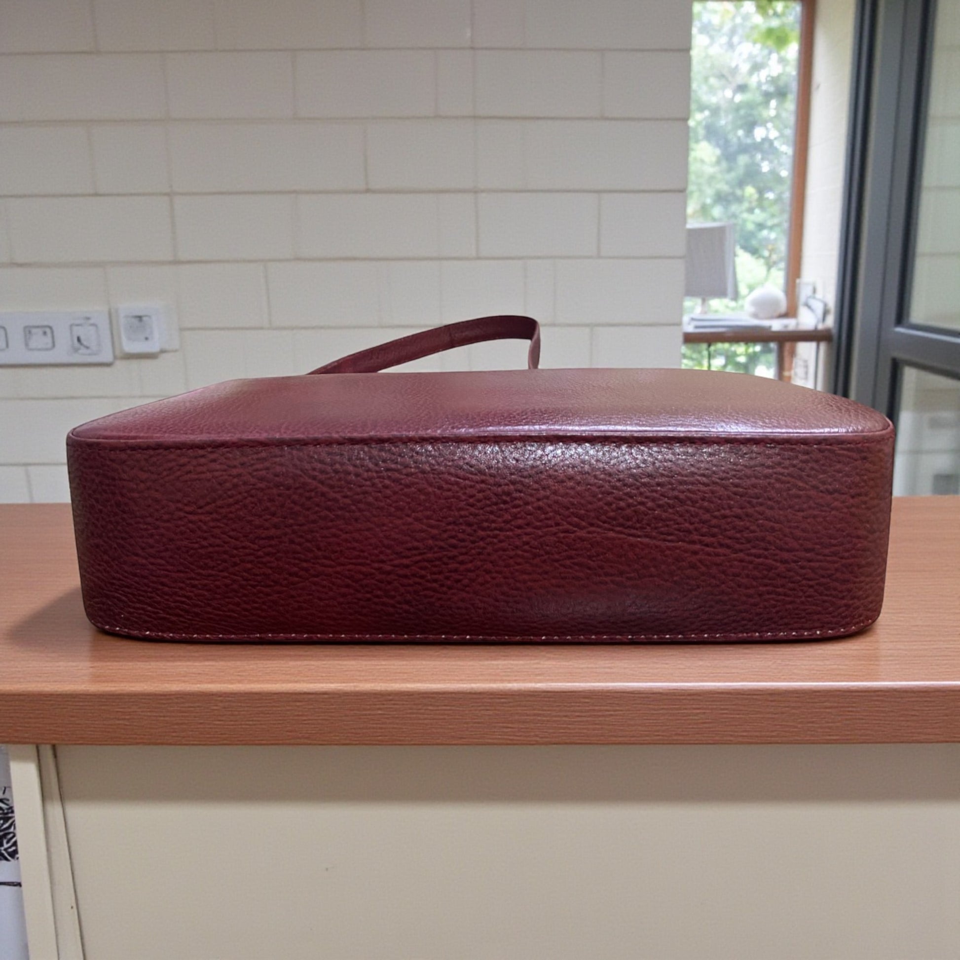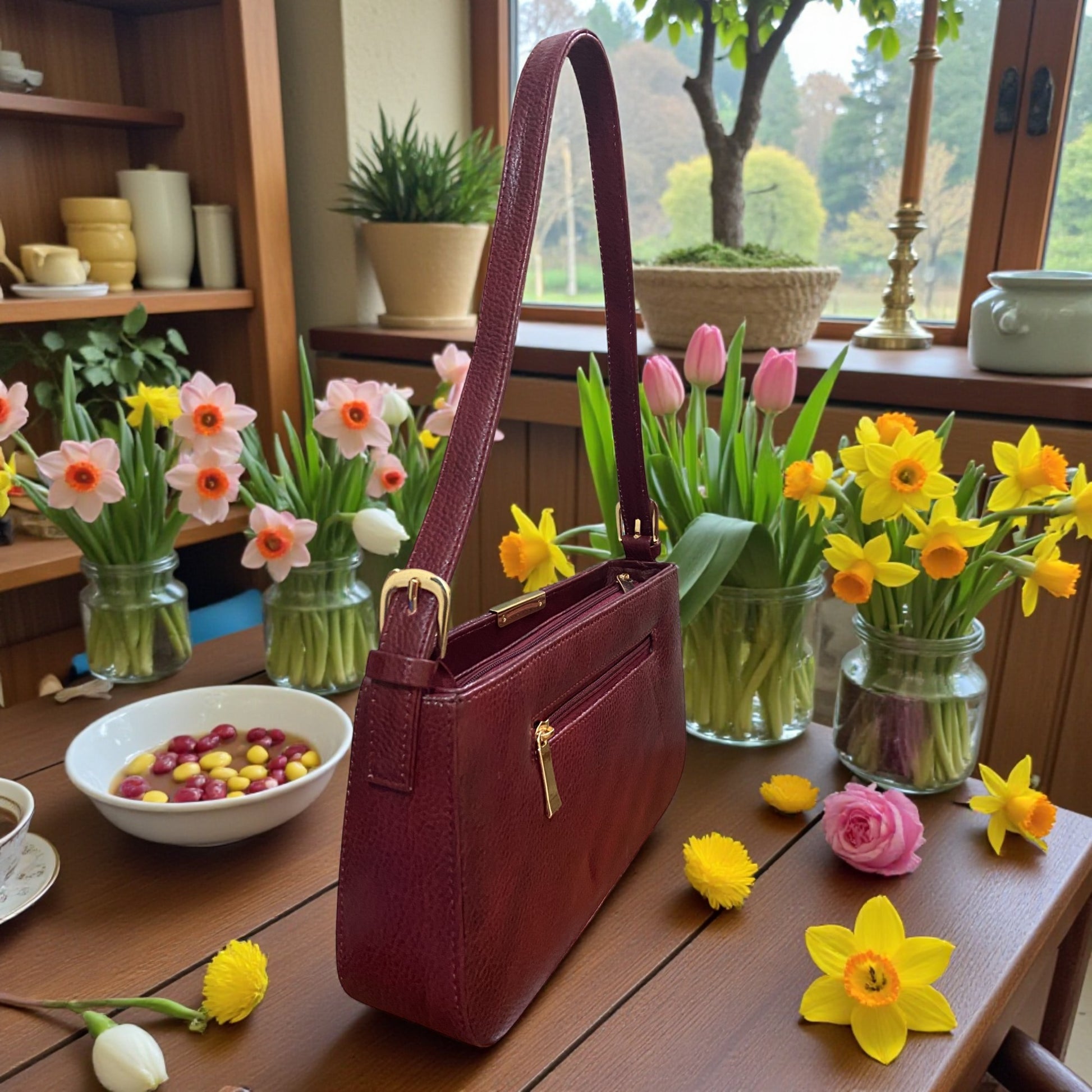 Women's Leather Shoulder Bag | Genuine Leather Baguette-Style Handbag with Gold-Tone Hardware | Slim Profile Purse with Single Strap for Daily & Formal Use | Elegant & Durable (Wine)