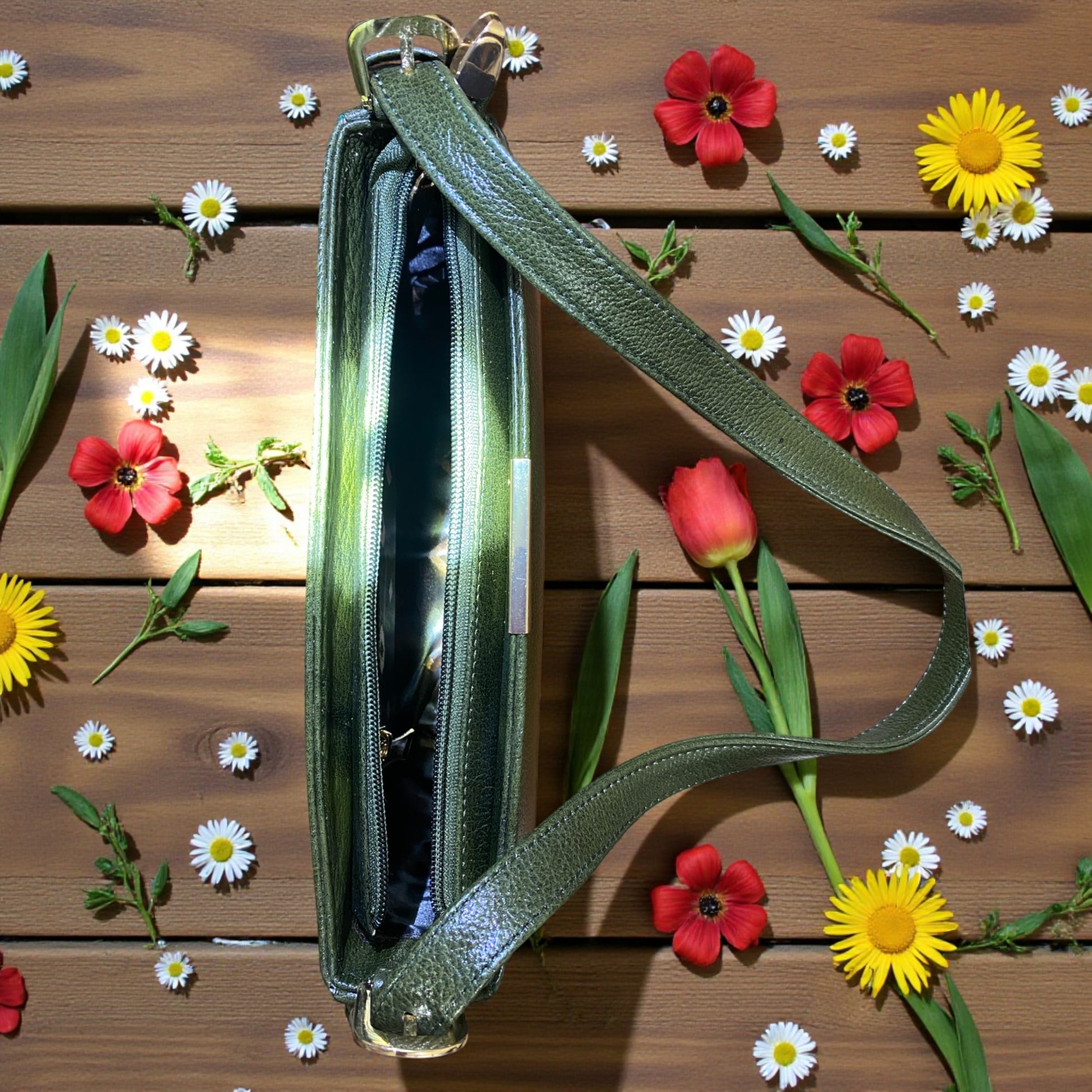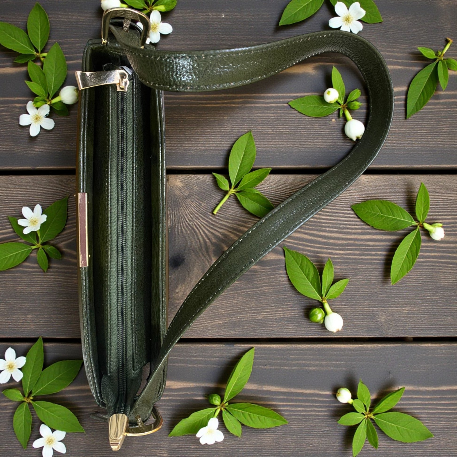 Women's Leather Shoulder Bag | Genuine Leather Baguette-Style Handbag with Gold-Tone Hardware | Slim Profile Purse with Single Strap for Daily & Formal Use | Elegant & Durable (Olive Green)